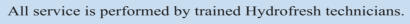 All service is performed by trained Hydrofresh technicians.